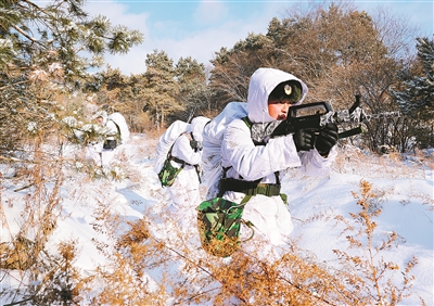 隆冬时节,黑龙江省哈尔滨警备区组织首长机关带民兵分队冬季野营训练,提升极寒条件下支援保障能力。吕衍海摄。