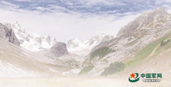 “高原戍邊模范營”官兵在巡邏路上。作者提供 秋去冬來,喜馬拉雅山脈寒風凜冽。