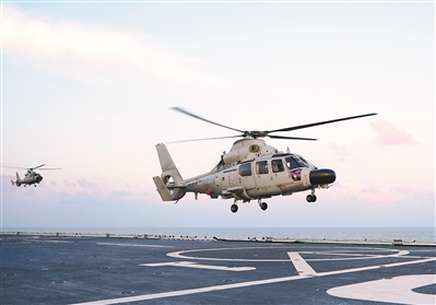 近日,海军某支队开展舰载直升机起降训练。唐浩然摄。