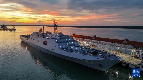 12月2日,中国海军989编队舰船靠泊在马来西亚巴生港(无人机照片)。 新华社吉隆坡12月3日电(吕志浩 张利锐)中国海军989编队结束对马来西亚为期4天的友好访问,3日从马来西亚巴生港启程前往印度尼西亚。