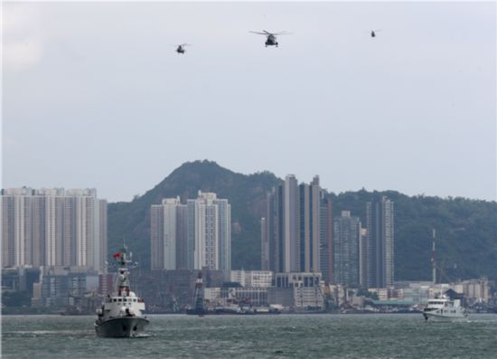 9月25日,驻香港部队出动陆海空三军部分兵力,在香港附近海空域组织联合海空巡逻演练,重点检验、提升部队紧急出动、临机处置、联合行动等作战能力。