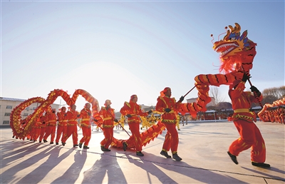 新春佳节,广场上锣鼓喧天、掌声雷动,舞龙表演精彩纷呈。在队员们的操控下,一条彩龙时而盘旋,时而昂首,在阳光下活灵活现、栩栩如生。